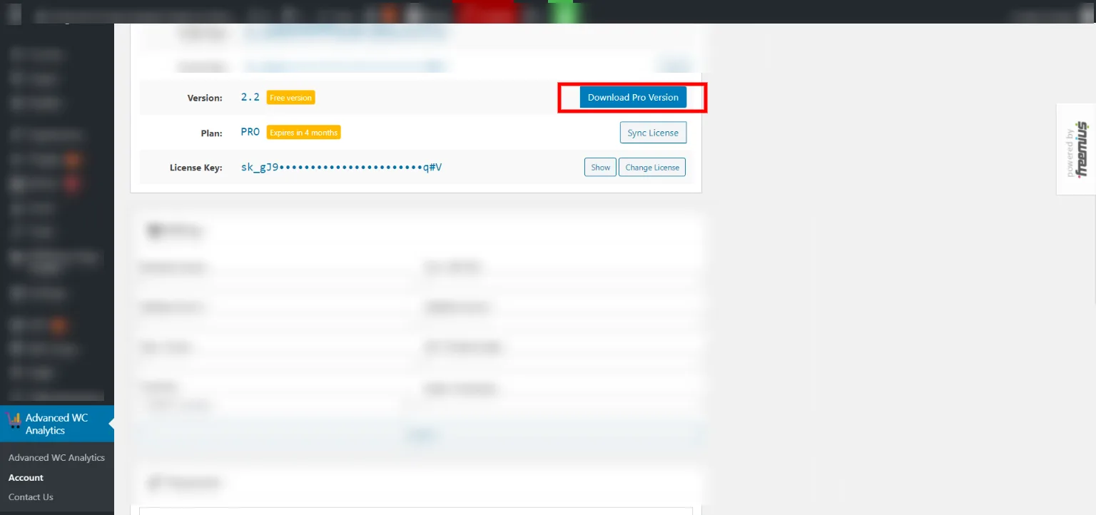 You will also receive credentials for your freemius account in email. Login to your account where you also get License key for Pro plugin.